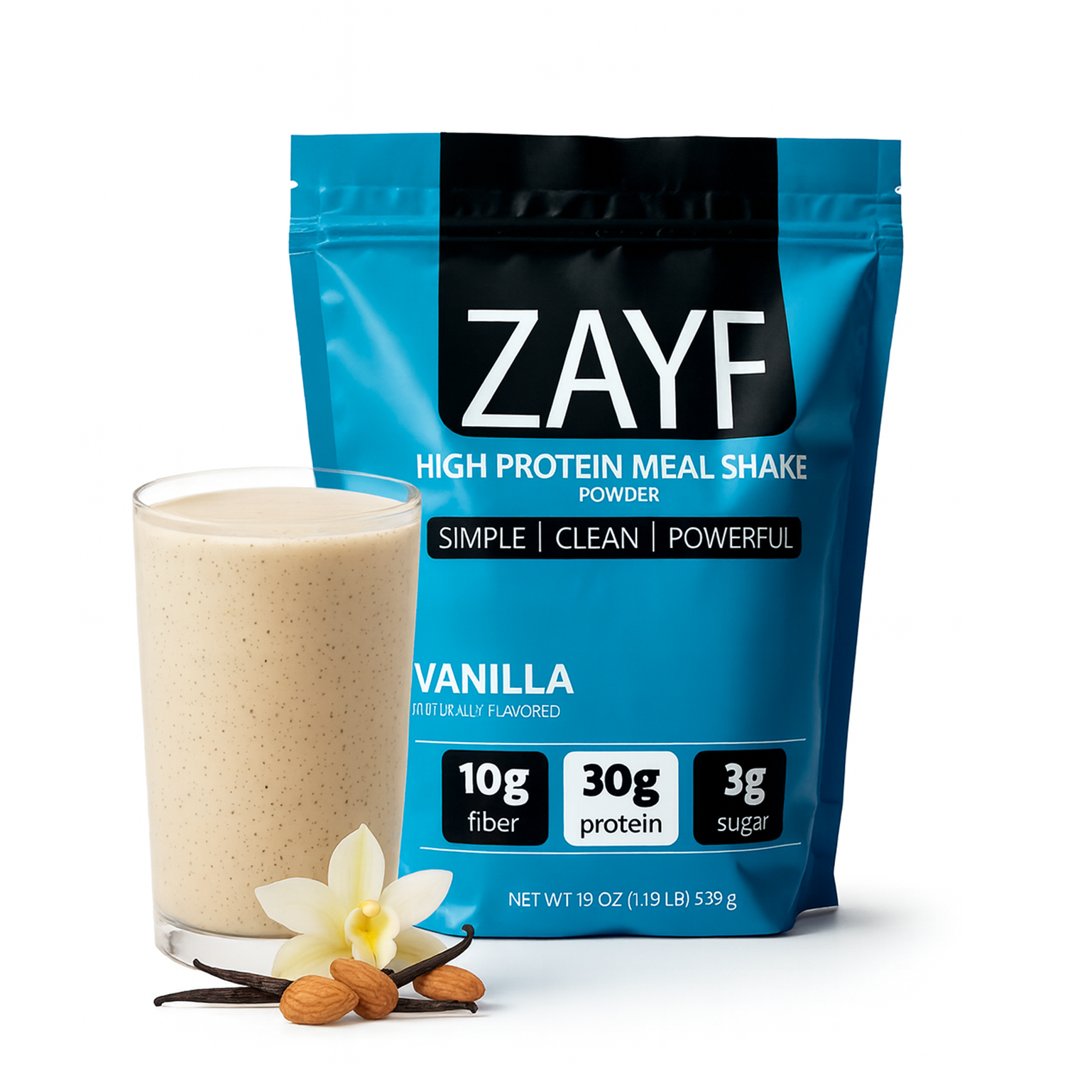 ZAYF is formulated as a high‑protein, high‑fiber shake that can replace a meal. Always consider your overall calorie needs.