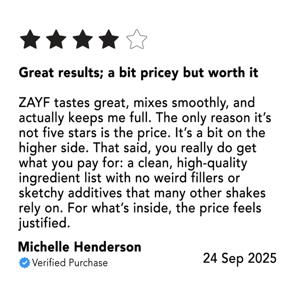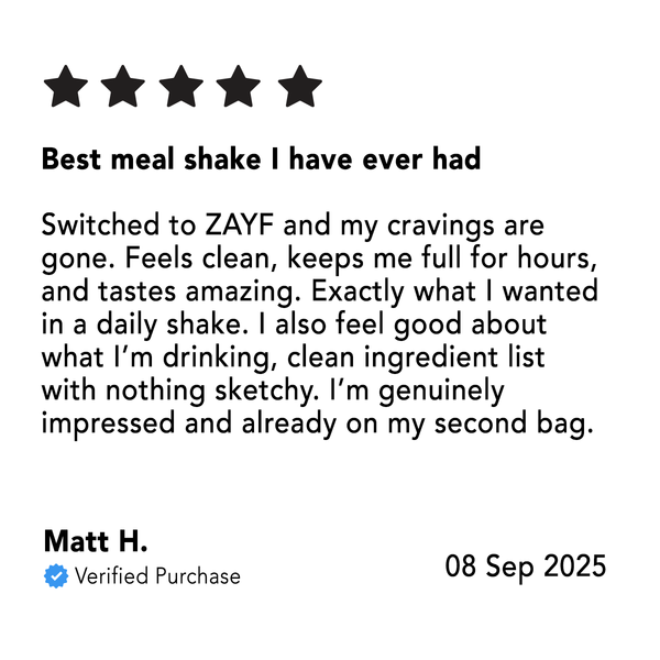 Discover ZAYF, the deliciously creamy high-protein meal shake designed to keep up with your busiest days. Packed with 30g of protein, 10g of fiber, only 3g of sugar, and only 300 calories, it provides lasting energy without any crash. Ready in just 10 seconds with cold water or your favorite milk, it’s the perfect choice for breakfast, lunch, or a post-workout boost. Made with clean-label, real ingredients, ZAYF is your convenient, nourishing solution—ideal as a quick meal or snack, and great for supporting weight management within a calorie-controlled diet.